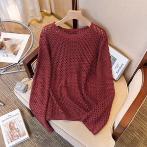 2025年新作女性用中空ニットセーター、ゆったり、スリム、万能長袖トップス、春秋薄手日焼け防止ブラウス