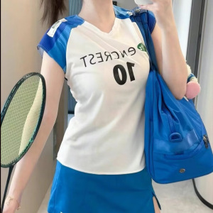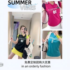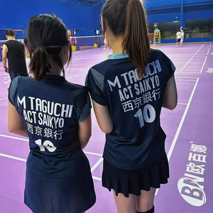 2025年新作Pバージョン競技用バドミントンユニフォーム フライングスリーブ付き 女性用 ティアンコウマインカラー 同型 吸汗速乾 通気性 プリント