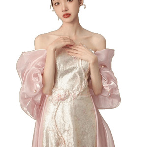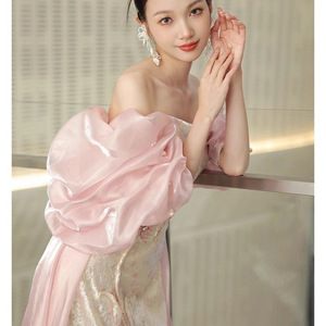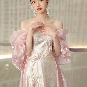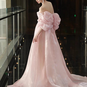 スーパーフェアリーブライダルドレッシングガウンピンク結婚式宴会婚約ドレスライト高級ハイエンドチューブトップ芸術試験娘スタイル乾杯ドレス