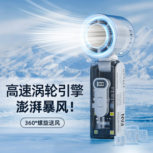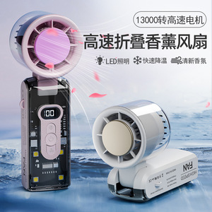新款手持高速香薰风扇USB迷你桌面涡轮便携式户外透明机甲风扇