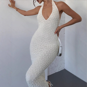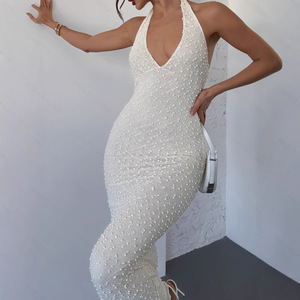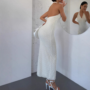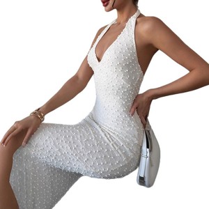 2025 新しいヨーロッパとアメリカのクロスボーダーファッション気質エレガントな美しさ V ネックバックレスホルターネックサマードレスロングスカート女性