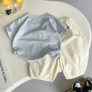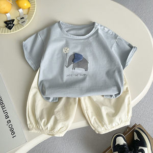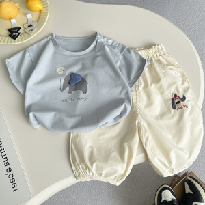 2025 子供の新しい子供服男の子半袖女の子サマースーツ西洋スタイル漫画韓国スタイルストライプ 2 点セット