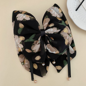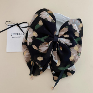 Xiangfei Loverの新しいリボン付き花柄ヘアクリップ、高級感、髪のボリュームが少ないポニーテールクリップ、後頭部クリップ