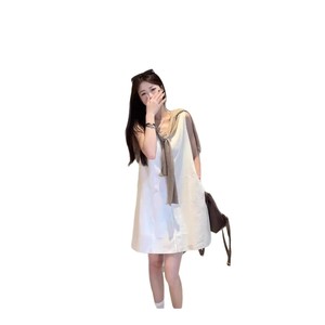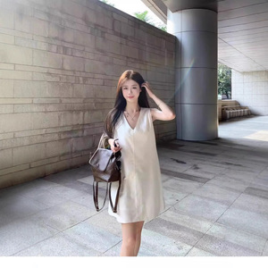 25 ホワイトレインデューリネンノースリーブドレス女性の夏の新しいフレンチシンプルな気質ルーズ痩身ショートスカート