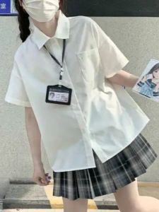 JK シャツ制服半袖白シャツルーズ女性の夏の純白の恋人カレッジスタイルベーシックシャツトップ