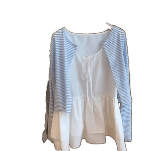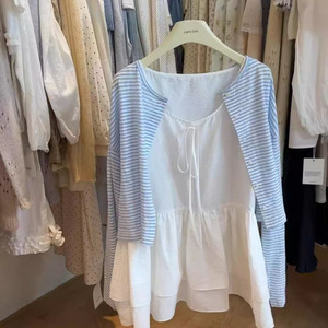 开春韩系穿搭一整套独特绝美套装女条纹针织开衫吊带连衣裙两件套