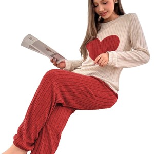 クロスボーダーラブパターンカラーブロックパジャマレディーススーツ春と秋の新作ソフト長袖ズボンホーム服2点セット