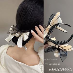 蝴蝶结丸子头抓夹夏季气质头饰后脑勺盘发神器发卡高级感马尾发夹