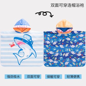 速干浴巾游泳儿童斗篷毛巾运动便携式套头双面冲浪外披衣吸水浴袍