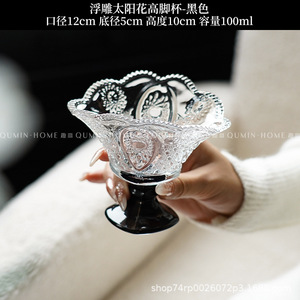 インスタイルエンボスガラスゴブレットホームデザートカップアイスクリームカップハイエンドヨーグルトカップミルクセーキカップ