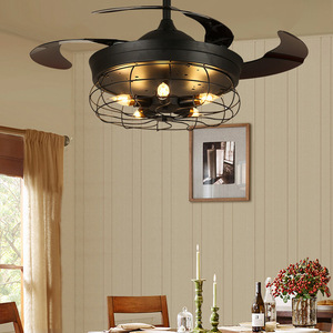 跨境Loft工业风扇吊灯复古美式餐厅带电扇静音家用LED遥控风扇灯