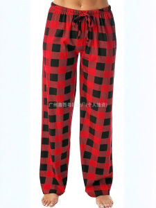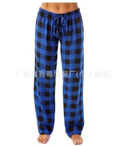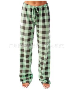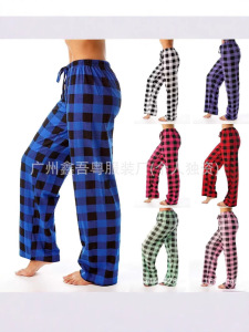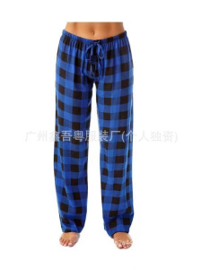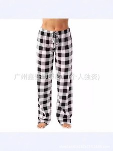 亚马逊外贸女士春秋束绳格子印花裤宽松长裤休闲裤家居裤