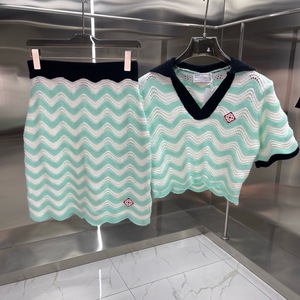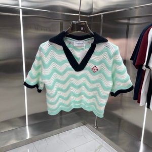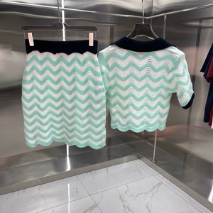 ヨーロッパとアメリカの貿易CASA新しいポロカラーバッジ刺繍織り波状カラーブロックニット半袖ドレス女性用
