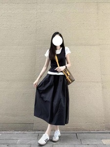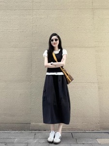 韓国風エレガントな年齢軽減ホリデーツーピース半袖Tシャツ2025夏新作レイヤードトップスエレガントな万能スカート