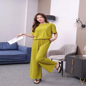 クロスボーダー千葉スーツレディース春夏レター刺繍薄手ホーム服スーツカジュアルルーズパンツ2点セット