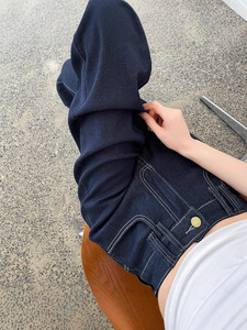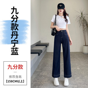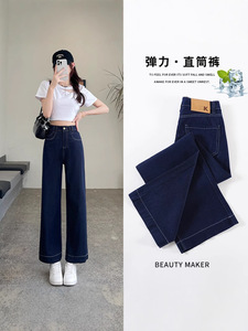 デニムブルータンジェンジェンジーンズレディース夏薄い2025新しいハイウエストルーズスモール弾性ストレートパンツ