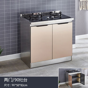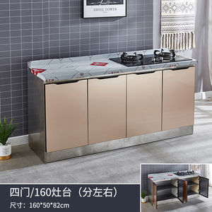不锈钢家用简易灶台水盆钢一体收纳碗橱组装经济厨房柜子储物柜厂
