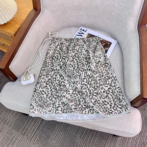 【スモークレオパード】ウエストゴムマイクロAレースミディスカート