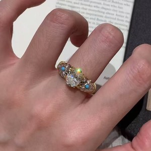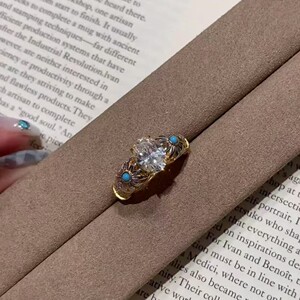 ライトラグジュアリーレトロブルーパインデイジーピジョンエッグ高炭素ダイヤモンドリングファッショナブルで多用途、ハイエンドの豪華な気質