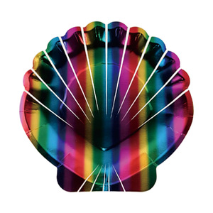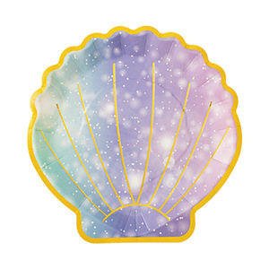 クロスボーダーシェルシェイプパーティー特殊形状紙皿使い捨てプレートレーザーカラーゴールドカラーシェルホリデーパーティー