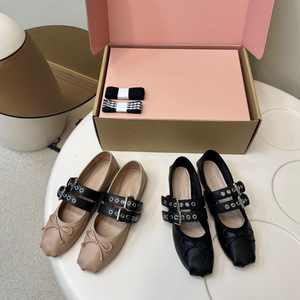 Ding~~25ss 新しいリボンストラップフラットバレエシューズ女性用リボン浅い口の靴