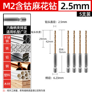 M2コバルト入り六角柄ツイストドリル[2.5mm]/5本