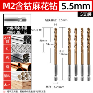 M2コバルト入り六角柄ツイストドリル[5.5mm]/5本