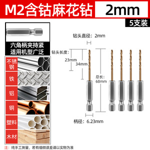 M2コバルト入り六角柄ツイストドリル[2mm]/5本