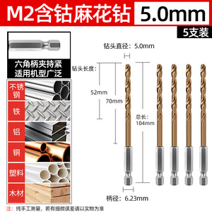 M2コバルト入り六角柄ツイストドリル[5mm]/5本
