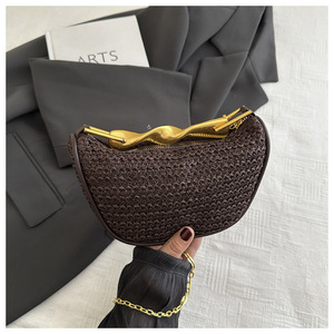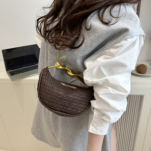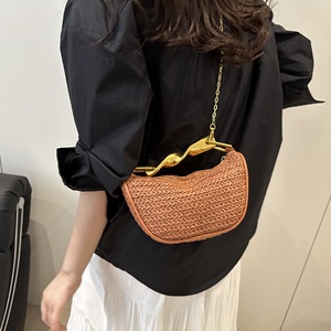 2025 夏の新しい女性のバッグシングルショルダーメタルハンドルミニクロスボディジッパーカジュアルファッション織バッグ