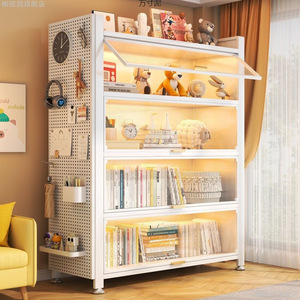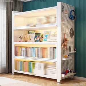 钢制书柜带门防尘翻盖储物柜一体靠墙家用儿童书架多层落地收纳柜