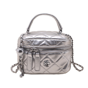 クロスボーダーシルバーチェーンスモールスクエアバッグ新しいニッチデザインショルダーハンドバッグクロスボディスモールスクエアボックスバッグ女性用