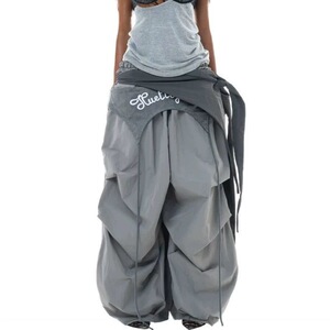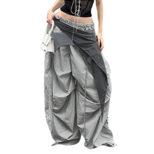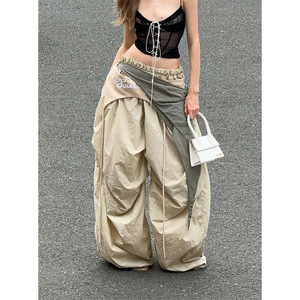 ストリートウエストコーストのパーソナライズされたデザインの多層ステッチ不規則なコントラストカラーカジュアルパンツルーズオーバーオールパンツトレンディ