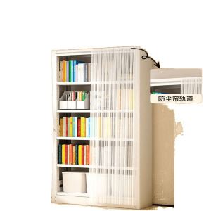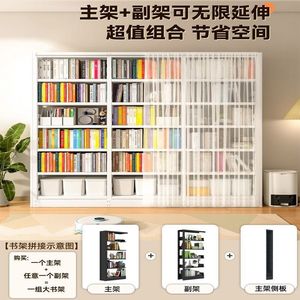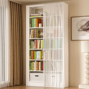 防塵カーテン付き家庭用本棚、図書館本棚、床置き収納ラック、リビングルーム、書斎、多層ガーゼカーテン、スチール本棚