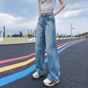 送料無料アメリカンレトロウォッシュ2025春夏新作ルーズストレートジーンズレディース万能ドレープワイドレッグパンツ