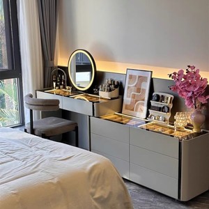 イタリアのミニマリストドレッシングテーブルとキャビネット一体型ライト高級寝室ハイエンドベッドサイドジュエリーキャビネット無垢材ペイント化粧テーブル