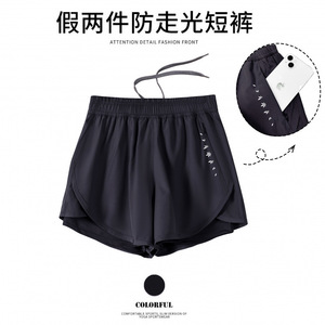 ショーツ グレー パープル フェイク ツーピース ドローストリング ポケット付き