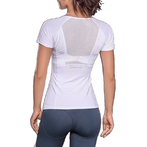 スポーツ半袖レディース速乾服夏ランニングフィットネス服ヨガ服美しいバックメッシュ弾性スリムトレーニングTシャツ新しい