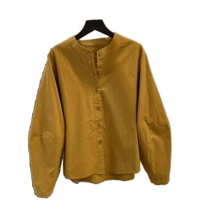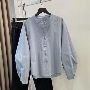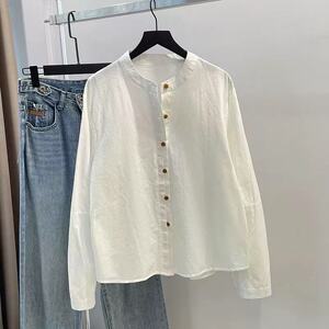 女性用のハイエンドラウンドネック白シャツ、女性用のゆったりとした2025新しい韓国スタイルのカジュアルなランタンスリーブレイヤードスリムシャツ