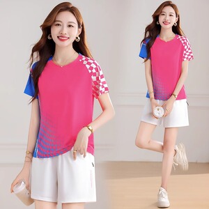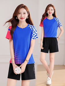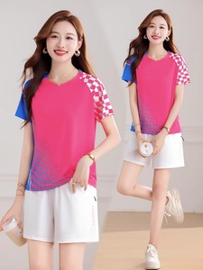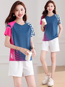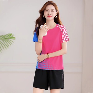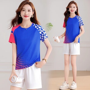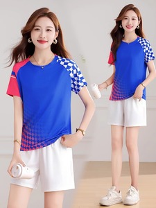 半袖ショーツスポーツスーツ女性の夏のアイスシルク 2025 新しいファッション速乾性バドミントン朝ランニングスーツ 2 点セット