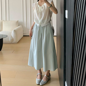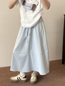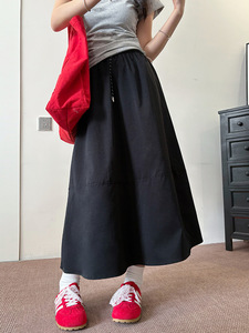 女性用ハイウエスト速乾スカート、夏の韓国風Aラインミドル丈アンブレラスカート、股間をカバーしてスリムに見える、スプライシングワークウェアロングスカート
