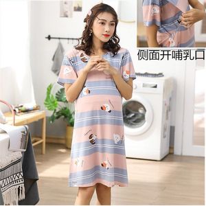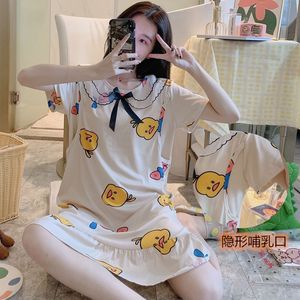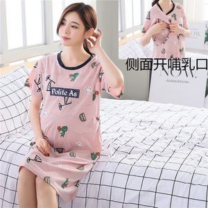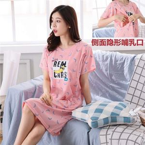 マタニティドレス授乳通気性夏半袖パジャマ授乳ネグリジェ吸汗性産後服産後薄い夏