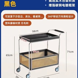 無垢材モバイルサイドテーブル車輪付きステンレス鋼収納中古トロリーリビングルーム収納籐収納シンプルなコーヒーテーブル