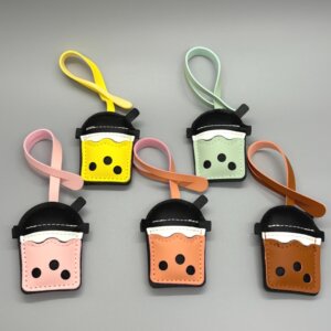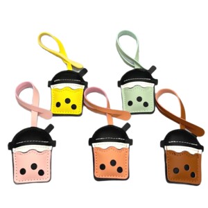 DIY ジュエリーバッグペンダントアクセサリー PU レザー立体両面マルチカラーミルクティーカップアクセサリー半完成キーホルダー