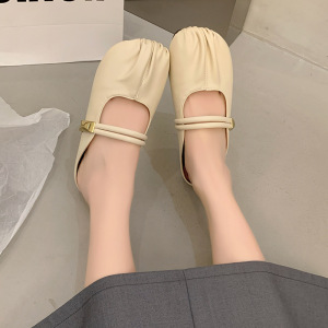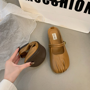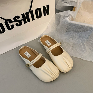 懒人包头半拖鞋女外穿2025新款夏法式褶皱豆豆穆勒鞋平底半拖单鞋