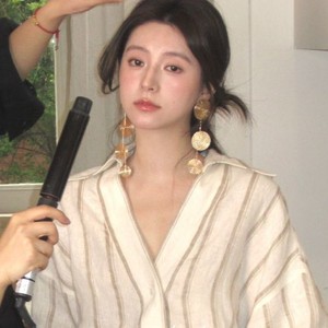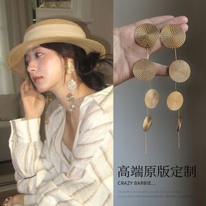 フレンチゴールデンディスクロングタッセルイヤリング誇張ニッチデザインハイエンド気質ファッショナブルなホリデーイヤリング女性用