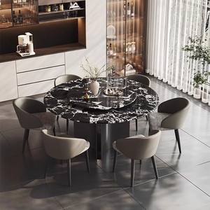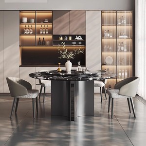 広東佛山ライト高級大理石のダイニングテーブルと椅子の組み合わせラウンドテーブルライト高級ハイエンドホーム小さなアパートのリビングルーム