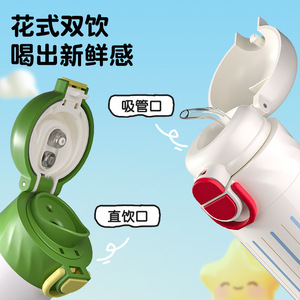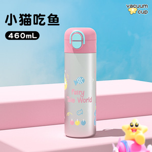 女性用の見栄えの良い漫画魔法瓶カップ、316ステンレス鋼のポータブル学生ドリンクカップ、学校に行く子供たちのための特別なストローカップ
