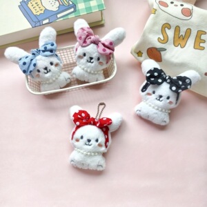 卡通毛绒公仔小兔挂件甜美蝴蝶结小兔别针玩偶包包钥匙扣挂件装饰