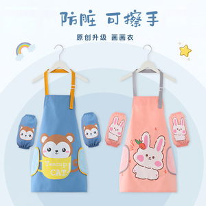 子供用絵画スモック、ベビーエプロン、幼稚園アート絵画、逆着用、手拭き可能、防水、防汚服